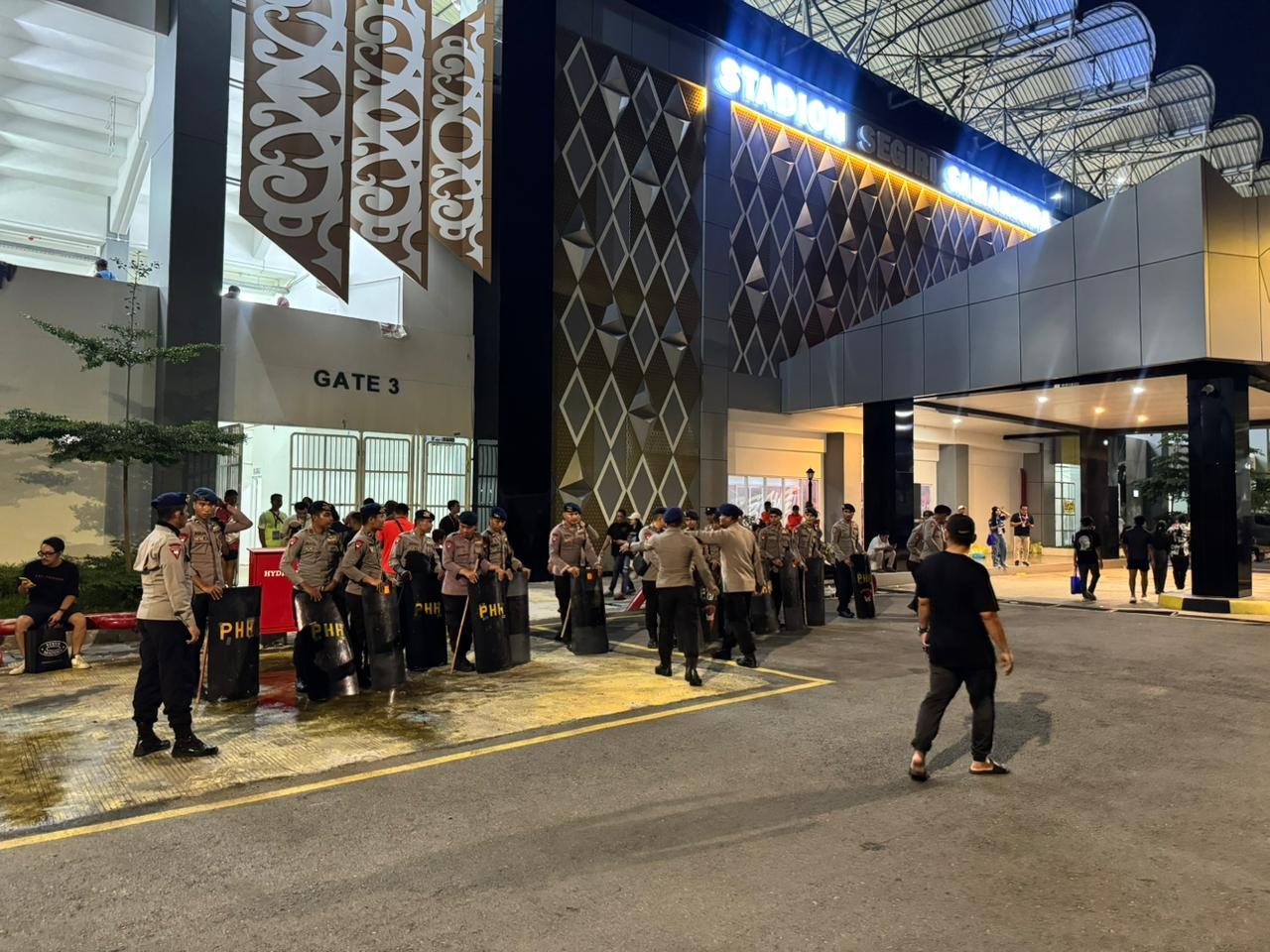 Sebelum peluit pertama dibunyikan, serangkaian prosedur pengamanan ketat telah dilaksanakan, diawali dengan inspeksi gate dan sterilisasi seluruh area lapangan yang dipimpin langsung oleh Danyon B Pelopor, Kompol Edy Musdwiyono. Langkah ini kemudian diperkuat dengan pelaksanaan Tactical Floor Game (TFG) yang dipimpin oleh Kapolresta Samarinda, Kombes Pol. Hendri Umar, untuk mematangkan koordinasi pengamanan antar-unit di lapangan. Berkat sistem pengamanan yang berlapis dan profesional, ribuan suporter dapat menikmati jalannya laga dengan nyaman hingga pertandingan berakhir dengan kemenangan telak Borneo FC atas Arema FC dengan skor 3-0.