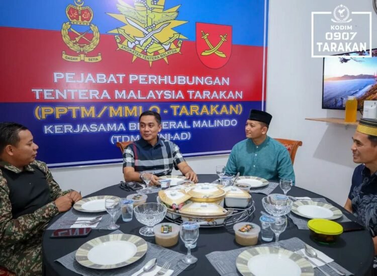 TARAKAN , Fokusborneo.com – Suasana kebersamaan mewarnai kegiatan buka puasa bersama antara jajaran TNI dan perwakilan Tentara Diraja Malaysia yang berlangsung di Kantor MM LO Malaysia, Jalan P. Kalimantan RT 17, Kelurahan Kampung 1 Skip, Kecamatan Tarakan Tengah, Jumat (6/3/2026).