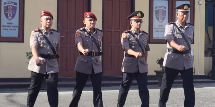TARAKAN – Polres Tarakan melaksanakan upacara Serah Terima Jabatan (Sertijab) Kasat Reskrim dan Kapolsek Tarakan Barat pada Jumat, 6 Maret 2026 pukul 16.00 Wita di Halaman Apel Mako Polres Tarakan. Kegiatan tersebut dipimpin langsung Kapolres Tarakan AKBP Erwin S. Manik, S.H., S.I.K., M.H., serta diikuti oleh pejabat utama, personel Polres Tarakan, dan Bhayangkari.