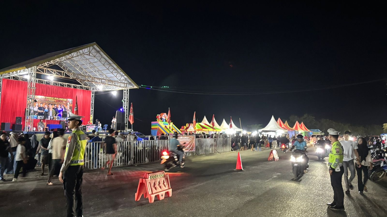 Pada Sabtu malam (25/4/2026), personel Sat Lantas Polresta Bulungan dikerahkan untuk melaksanakan pengamanan (PAM) jalur dan pengaturan lalu lintas di area kegiatan Gebyar UMKM.
